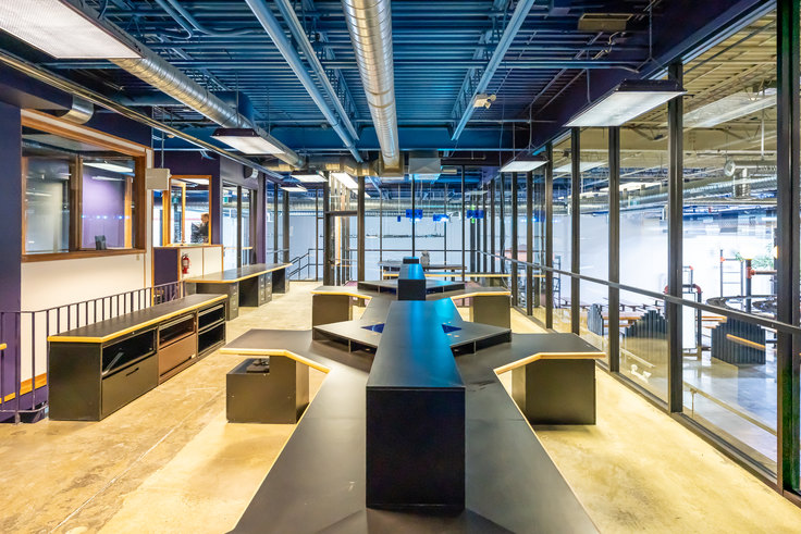 Production office space including meeting rooms, executive offices, and collaborative work spaces.